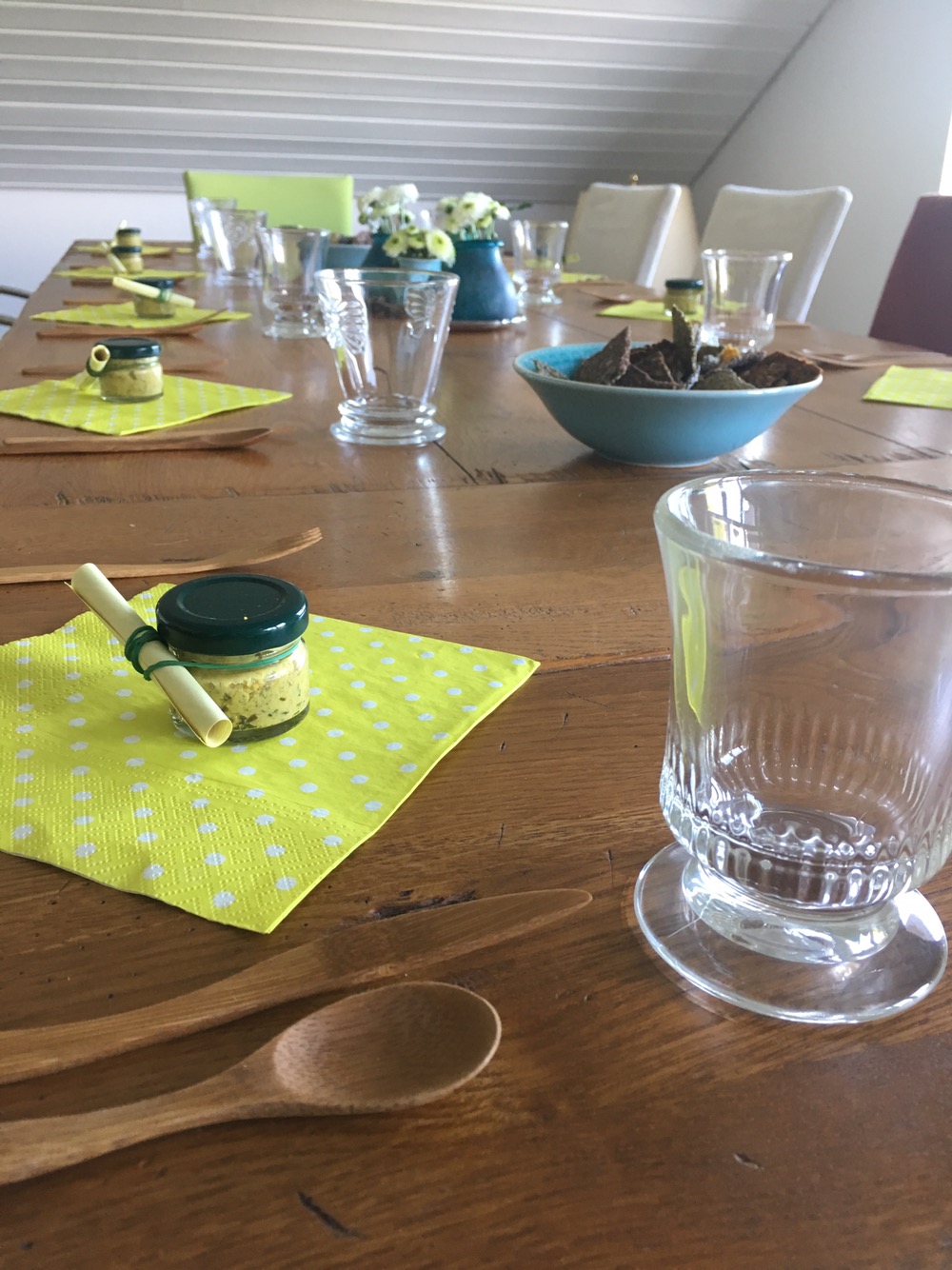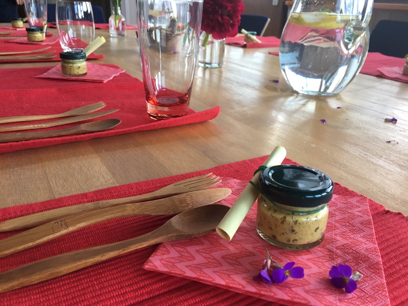 für jeden Gast ein Glas selbstgemachten Rohkost- Bärlauch Senf!