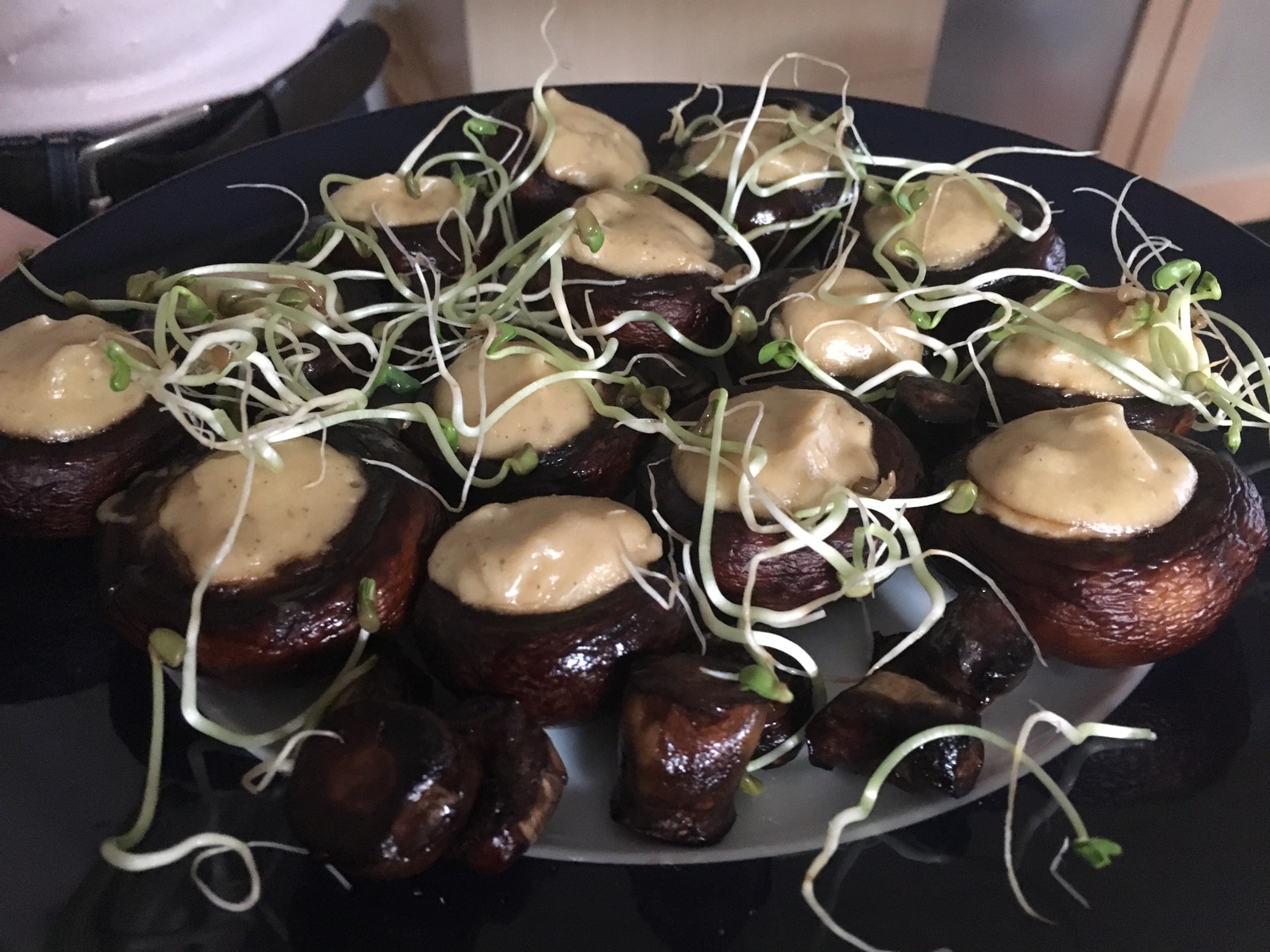 ein Gruß aus der Küche… dehydrierte Champignons, gefüllt mit Cashewkäse.