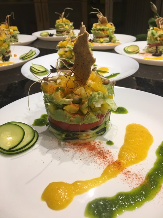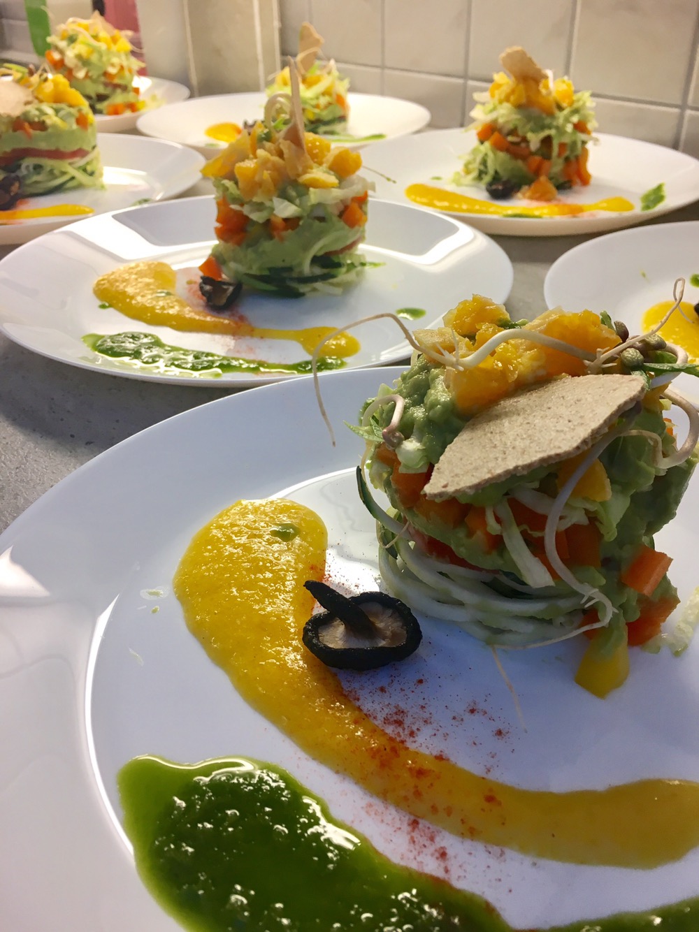 Salattürmchen an Bärlauchöl und Orangensoße