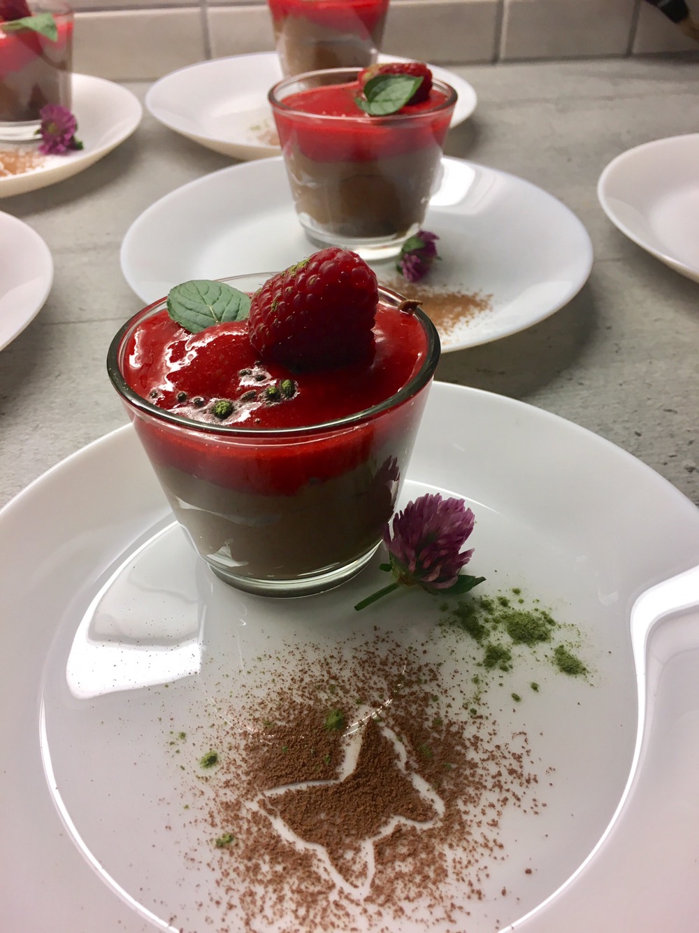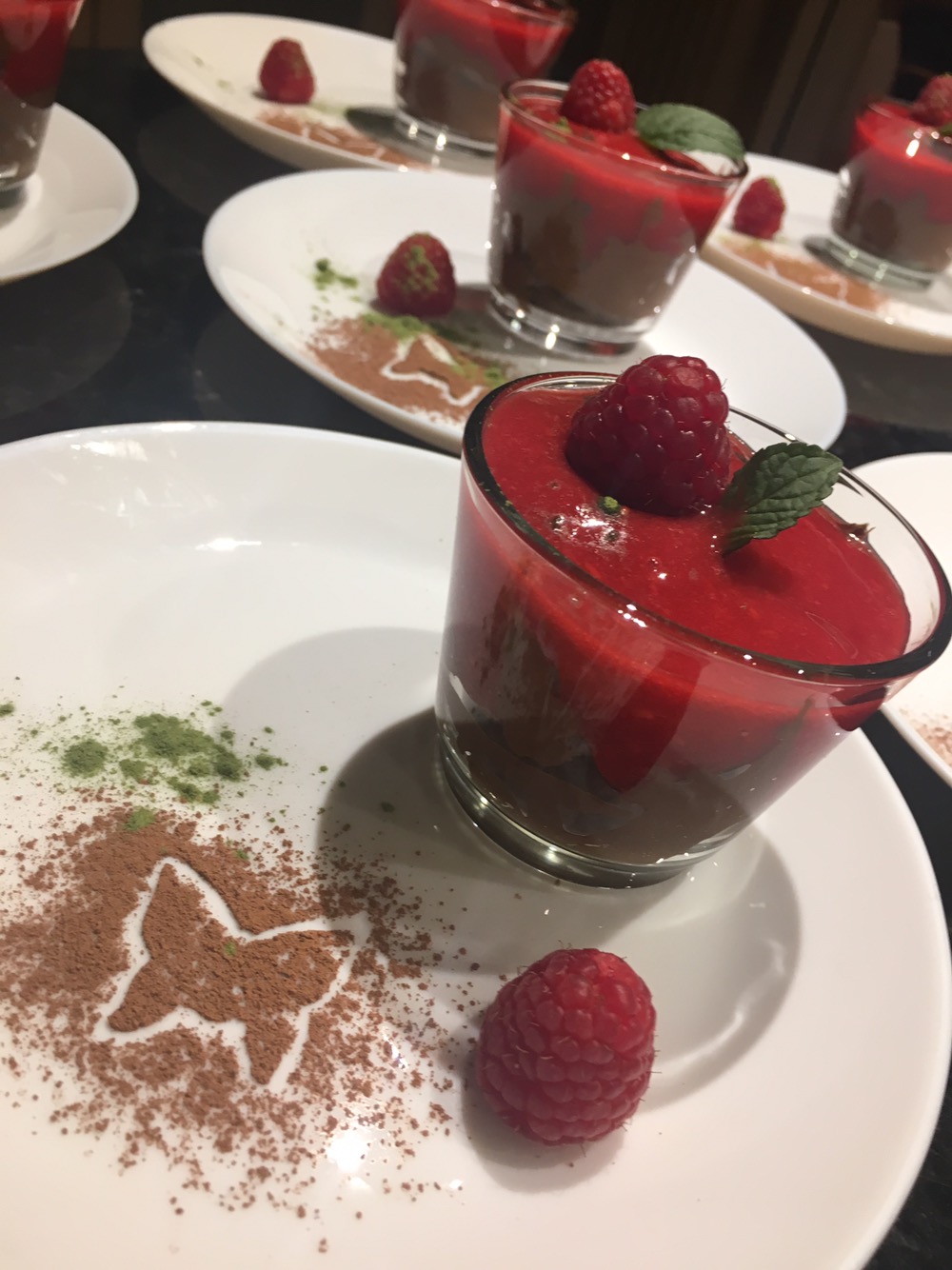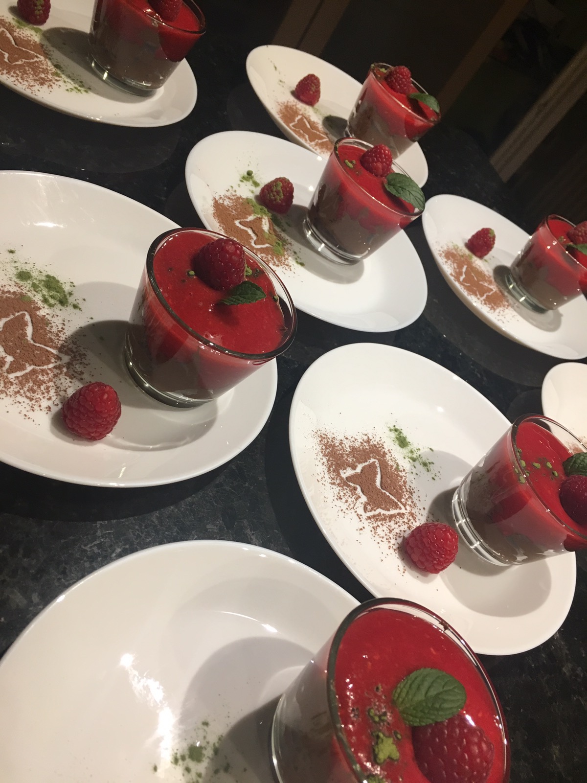 Mousse au Chocolat mit Himbeeren Coulis.