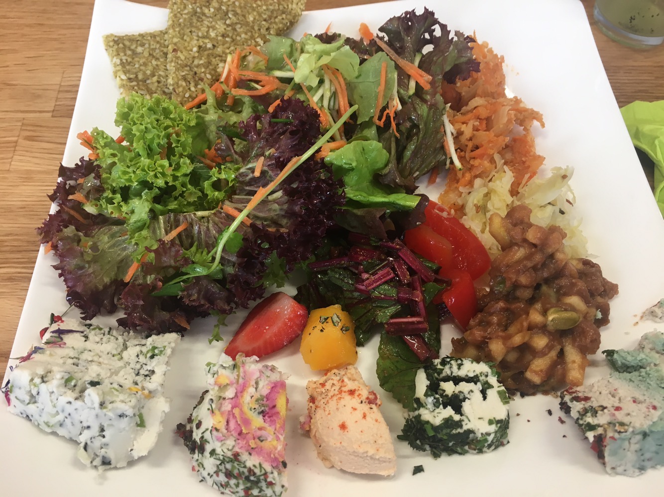 Rohkostbrot und Chisekt sowie eine Crackerauswahl darf natürlich auch nicht fehlen.