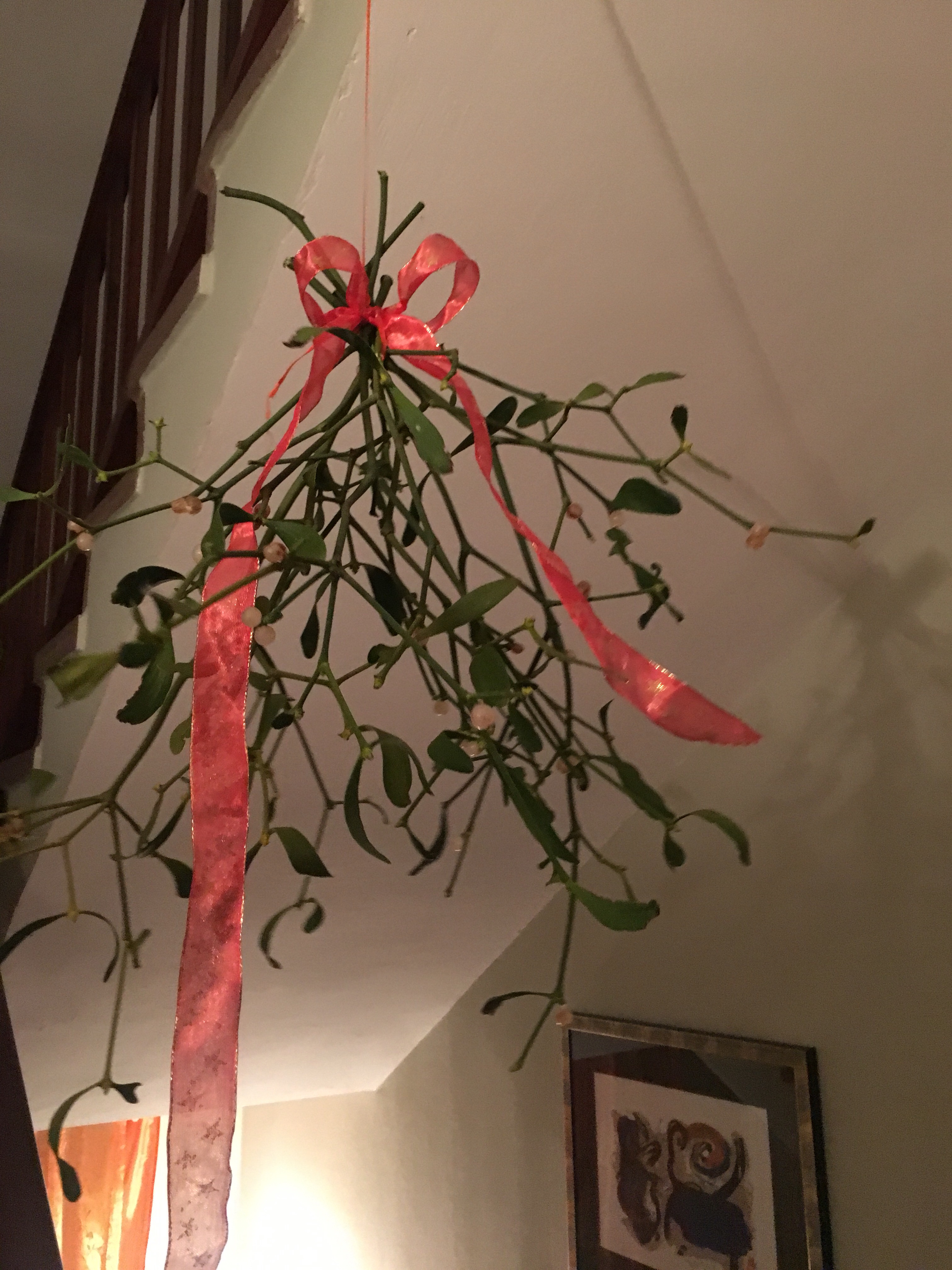 Der Mistelzweig hängt, bisschen musste ich schon auf den Baum klettern um ihn zu bekommen. Damit mich niemand sieht, auch noch im Dunkeln… ( ich sag jetzt nicht wo, sonst haltet ihr mich jetzt für ganz verrückt) Der Mistelzweig ist ein Symbol für Glück, Gesundheit, Mut und es gibt sehr viele Geschichten über ihn.