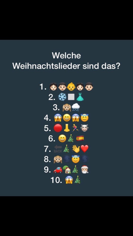 Hier ein Weihnachtslieder Quiz für euch… Vielleicht kennt ihr es schon. Ich finde es witzig. Viel Spass dabei!