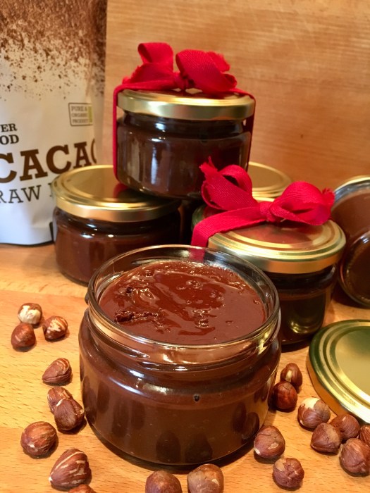 Ich bleibe dran, vielleicht gibt es die mal zu kaufen… rohen Schoko-Haselnussaufstrich, ohne Palmfett!!! und ohne Zucker!!!