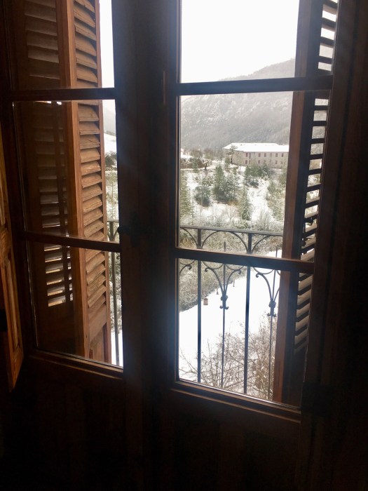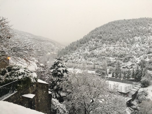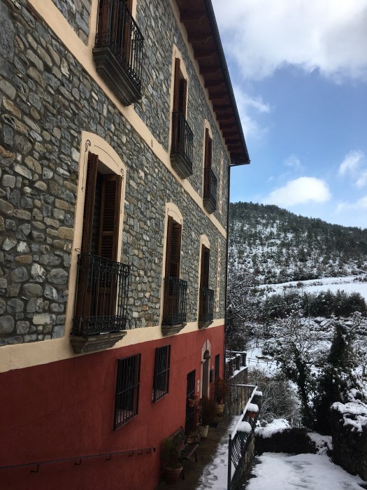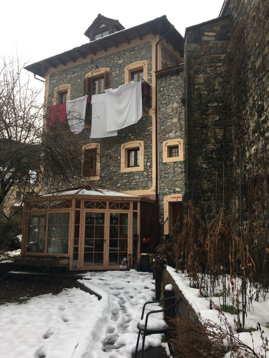 wenn der Schnee vielleicht doch wieder etwas weniger wird, gibt es noch ein paar mehr Bilder vom Wintergarten, den zwei Etagen Garten und noch ein wenig von der bezaubernden Umgebung. Heute erst mal ganz relaxt, es gibt zur Zeit 4 Gäste im Haus. Das Hotel hat gerade mal 6 Zimmer. Ein bisschen Frühstück machen und ich habe gleich mal ein Mais/Reis Brot gebacken. Da ein Gast kein Gluten verträgt. Wieder mal eine Herausforderung und viel Improvisieren… aus Maisgrieß und Reiskörnern Mehl gemacht und den Rest gab es im kleinen spanischen Laden.