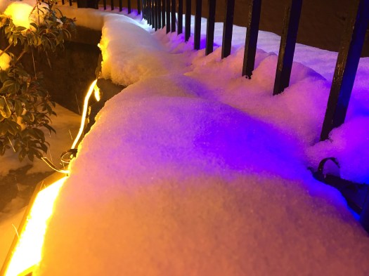 und nun heute Morgen der Blick aus dem Fenster… Schnee und das ohne Ende. Übrigens, Schneeschieber kennen die hier nicht… nie gehört und gesehen. Also wirklich alles voll Schnee.