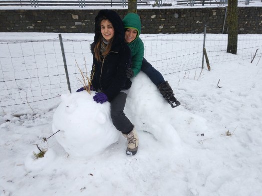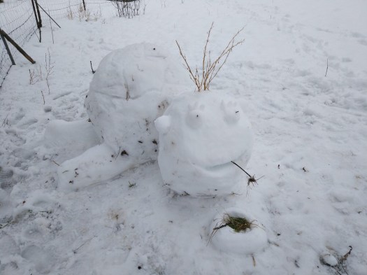 Es hat so viel Spaß gemacht. Auch wenn ich so was von nass war… egal. Total nasser Schnee und Schneefall. Ein kleiner Plastikschlitten und 3 „erwachsene“ Menschen. Schneeballschlacht, Schneeengel, Rodeln und Schnee- Schildkröte bauen…