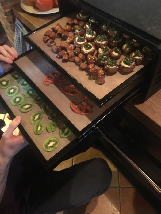 der Dehydrator lief auch auf Hochtouren… Kiwi, Tomaten und gefüllte Pilze sowie marinierte Saaten, habe ich gemacht. Sie sind so begeistert, der Dehydrator wurde ständig geöffnet um den Fortschritt zu beobachten…