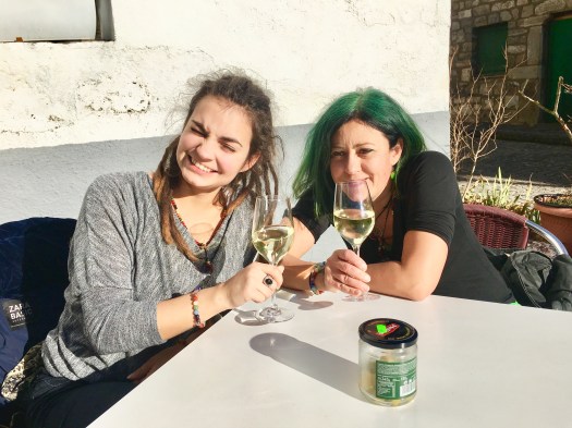 Gegen 17.15 Uhr sind wir super in Ansó angekommen. Ach war die Freude groß. Besonders die vielen Mitbringsel, eine ganze Kiste voll deutsche vegane Lebensmittel und mehrere Kisten voll mit Rohkost, Rohkostkäse und Glühwein…kamen super an.