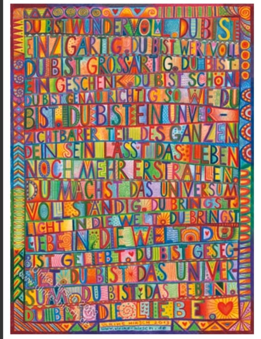 … ist ein tolles Poster von der Künstlerin Ulrike Hirsch, hier von mir um die Ecke. Ich liebe ihre Kunst. Leider konnte ich noch vor Jahren, damit nicht so richtig was anfangen. Meine Tochter hat die Sachen schon als kleines Kind gemocht. Als wir damals ( ist bestimmt schon 9 Jahre her) auf einen Kunstmarkt waren… wollte sie von ihr unbedingt ein Büchlein haben.