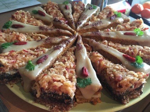 Karottenkuchen und Mohnkuchen mit Apfeldecke.