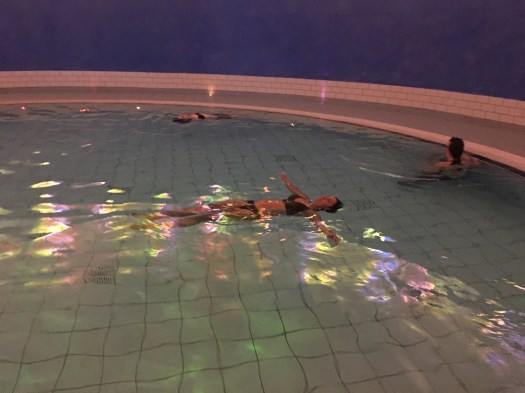 Das besondere an ihr ist das starke körperwarme Salzwasser, das einen schweben lässt mit Liquid-Sound, also Unterwassermusik… so schön.