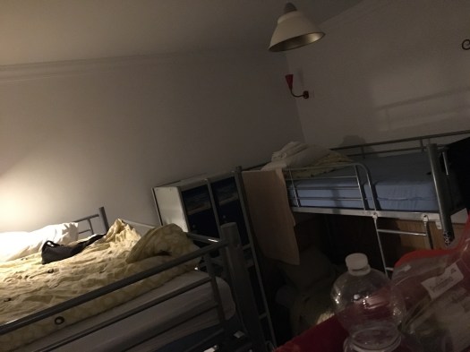 So nun haben wir auch noch in unserem kleinen 6 Bett Zimmer einen Mann, oder jungen Spanier… er legte sich gegen 3 Uhr ins Bett… seit dem nun auch noch anhaltende laute Geräusche aus seinen Gesicht… ( die geschenkten Ohropax vom Flughafen, halten nicht!😂)