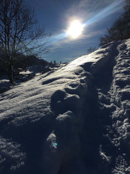 im Tiefschnee und bei blauen Himmel und Sonnenschein. Einfach traumhaft schön.