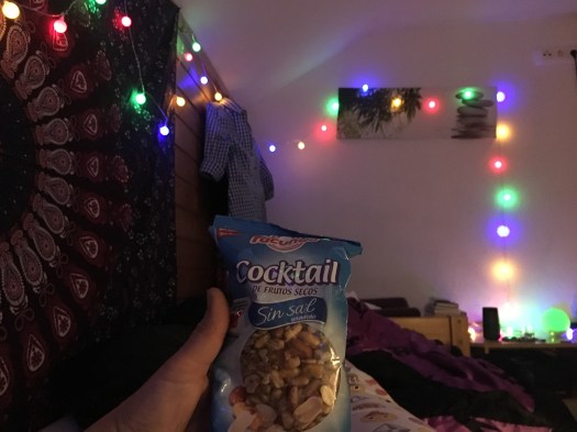 Auf dem Bild, ganz oben, wo das kleine Lichtchen leuchtet, das ist mein kleiner Weihnachtsbaum. Ansonsten hab ich wieder meine Mandalatücher aufgehangen, der Diffuser muss praktisch immer laufen wenn ich da bin. Da es hier oben echt sehr warm ist und die Luft sehr trocken.