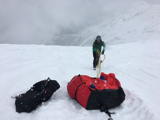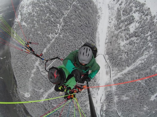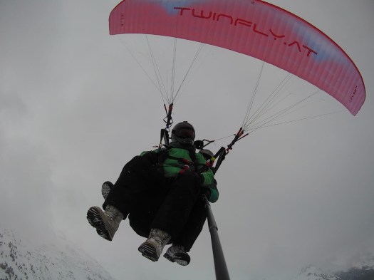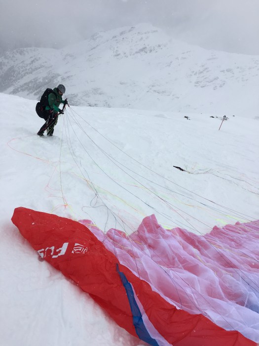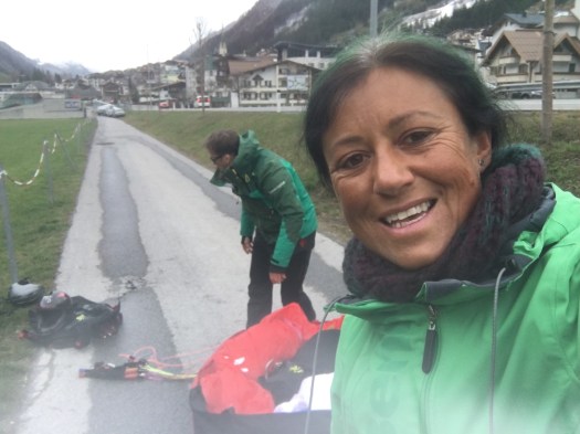 Man glaubte es kaum… auf 2600 m nur ganz leichter Schneefall, kein Wind. Da alles so schnell ging, hatte Karen keine Gelegenheit Angst zu haben und irgendwie überhaupt klar zu denken… alles ging automatisch!