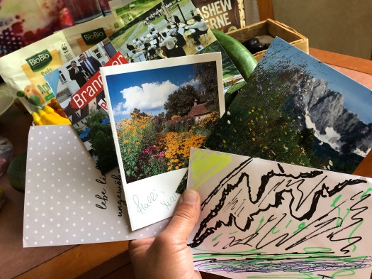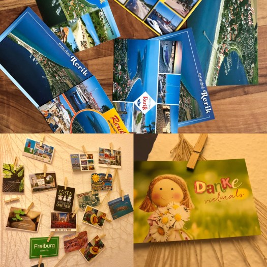 Danke an Bianca und Michael und Sonja… für gleich mehrere Karten! Danke liebe Martina aus Leipzig für Brief und Karte… Danke für die weiteste bisher aus La Palma von Nelly… die selbst gebastelte aus meinem Heimatort von meiner Tochter… so cool, hab es erst einmal garnicht gemerkt… Danke Thomas für die individuelle Landschaftszeichnung vom Allgäu … der neuen Vereinskarte von Pro Lebensglück und Gut Weidensee… ganz lieben Urlaubskarten… Karten mit Sprüchen… und Karten von Heimatorten… und noch soooo viel mehr. Hab mich über jede einzelne gefreut! DANKE!!!