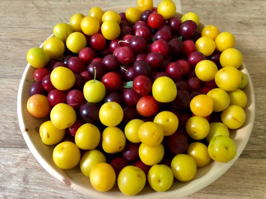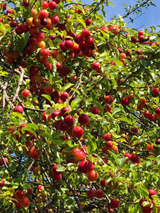 Auf meinen Fahrrad bin ich dann mit den großen Schatz nach Hause geradelt. Und da ich echt Durst hatte hab ich unterwegs Minipflaumen oder Kirschplaumen und Mirabellen gepflückt und gegessen.