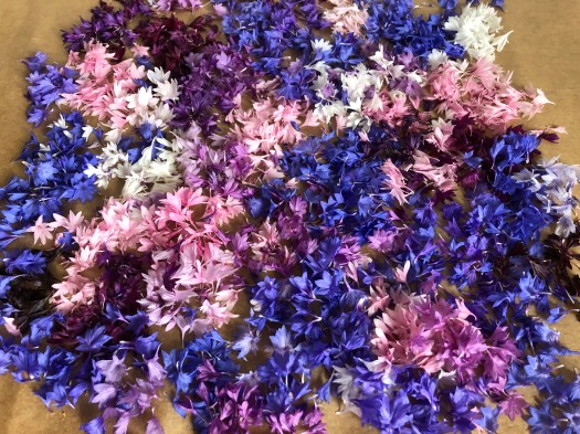 … ich habe bunte Kornblumen von meiner Wildblumenwiese neben dem Haus gepflückt… sie werden getrocknet und dienen als Topping für die rohköstlichen Speisen.