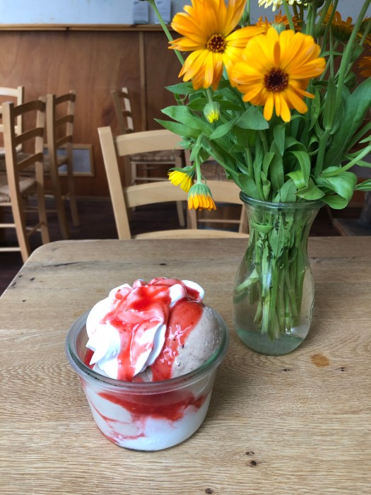 An diesem Samstag bin ich dann noch nach Rostock gefahren… war von dem Strand und der Sonne schon bisschen müde und hatte nicht mehr Lust auf viele Unternehmungen… aber lecker vegan essen geht immer! Leider hatte ich wieder das Glück, dass die Grüne Kombüse ein Hochzeitscatering hatte… also heute geschlossen… dann blieb nur das altbewährte Vegangster! Es gab einen leckeren Wrap mit Jackfruit… und für zu Hause noch ein Stück Zupfkuchen…