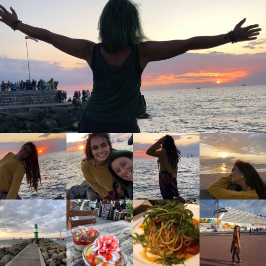 Große Segelschiffe… Kreuzfahrer… Rummel… Livemusik… wir waren noch im Veis Rostock lecker vegan Eis schlemmen… bisschen an der Mole wandeln im Sonnenuntergang und dann noch Pasta beim Italiener in Warnemünde, direkt am Wasser… wunderschön… und wir hatten Glück, konnten wir doch noch 3 große Fähren ein und auslaufen sehen und auch das große norwegische Kreuzfahrtschiff….