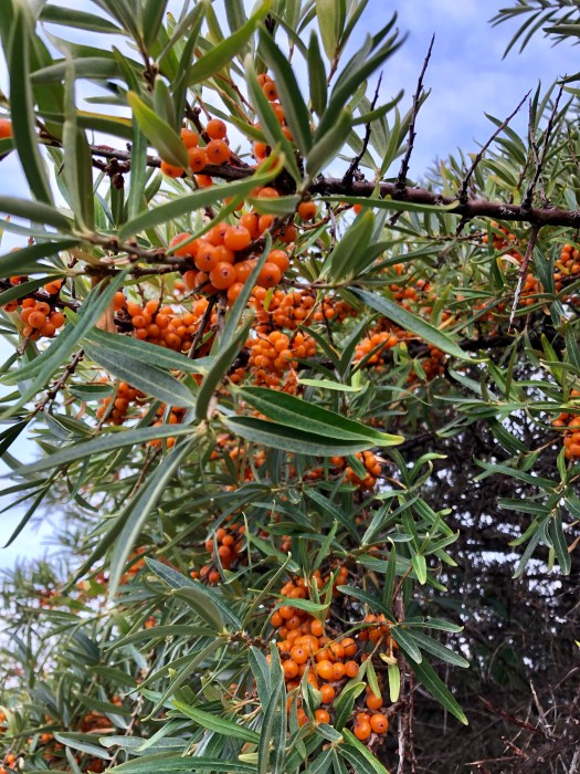 … und auch schon wieder Sanddorn ernten und ein leckeres Sanddorn-Mangodessert daraus machen…