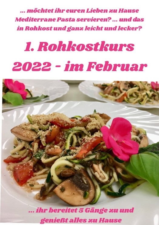 Rohkost geht immer… auch zur kalten Jahreszeit! Lasst euch überraschen wie aus einfachen, saisonalen Obst und Gemüse leckere Gourmet Rohkost entsteht. Lernt Wissenswertes, Verarbeitungsmöglichkeiten und Tipps wie Rohkost leicht in den Alltag zu integrieren ist. Salat, Suppe, Dressings, Cracker, Torte und Kuchen, Fermentiertes, Smoothies, Säfte und Desserts….