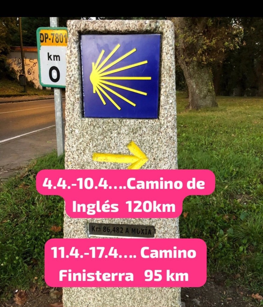 1 Woche: Camino Finisterra 95 km, Camino de Ingles: 120 km