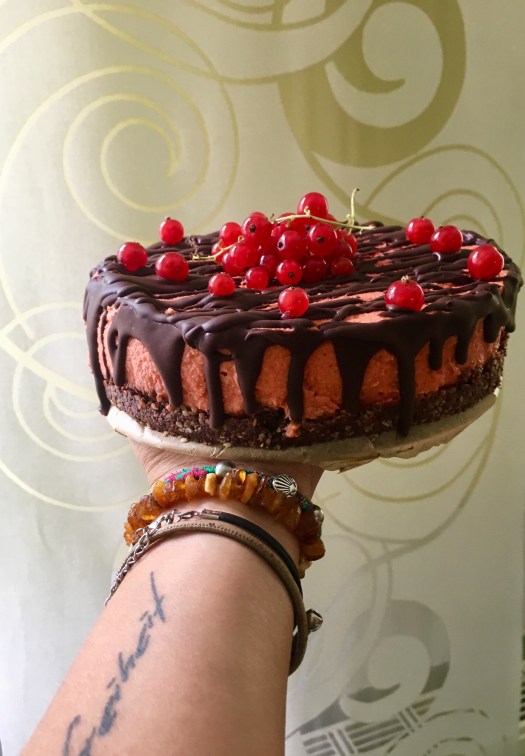 Ich habe es etwas abgewandelt, da die Kokosflocken alle waren. Als Ersatz gab es Erdmandelnflocken und 1 El Kokosmus. Auf dem Guss habe ich etwas RAW-Schokolade geraspelt- und natürlich die Möhrchen aus Gojibeeren… Zwar von der Jahreszeit, so kurz nach Weihnachten, etwas unpassend-aber echt lecker und einfach herzustellen!