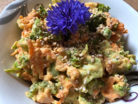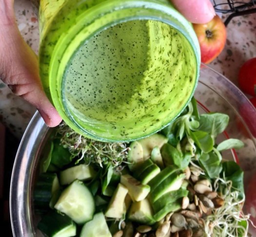 alles zusammen gut durchmixen… und auf grünen Salaten genießen.