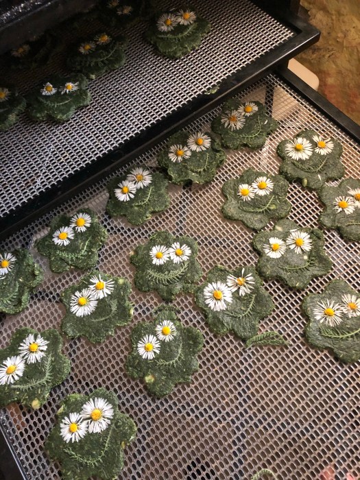 200 g Mandeln und 4 El Leinsamen mahlen und zusammen mit 2 Möhren, 1/2 Paprika , 5 El Sesam, 1 El Zitrone, 3 El Olivenöl, 2 El Tamari in der Küchenmaschine zu einer Teigmasse verarbeiten. Mit viel gem. Kreuzkümmel, gem. Koriander, 1/2 Tl Knoblauchpulver und Salz abschmecken. Kugeln rollen. Im Dehydrator ca. 3-4 h dörren.