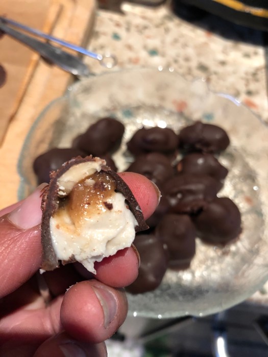 200 g Haselnüsse fein mahlen, 2 El Kakao, 2 El Birkenzucker ( gemahlen) und 2-3 El Agavendicksaft dazugeben und zu einer Masse verarbeiten. Kugeln daraus formen und nicht zu viel naschen!😊