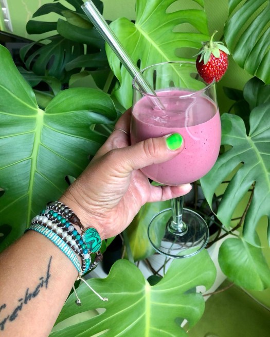 Wenn ihr eine oder auch zwei gefrorene Bananen nehmt… wird er eher klassisch wie ein Erdbeereis-Milchshake.