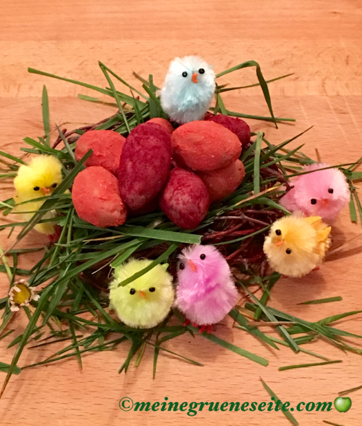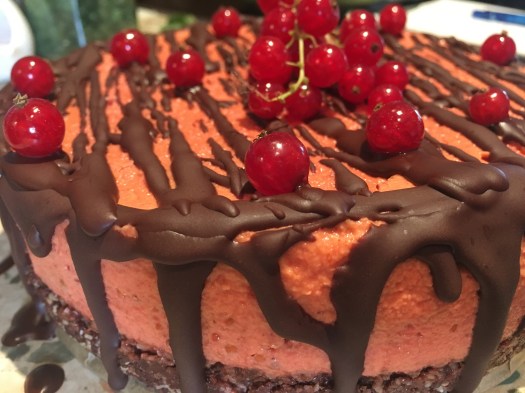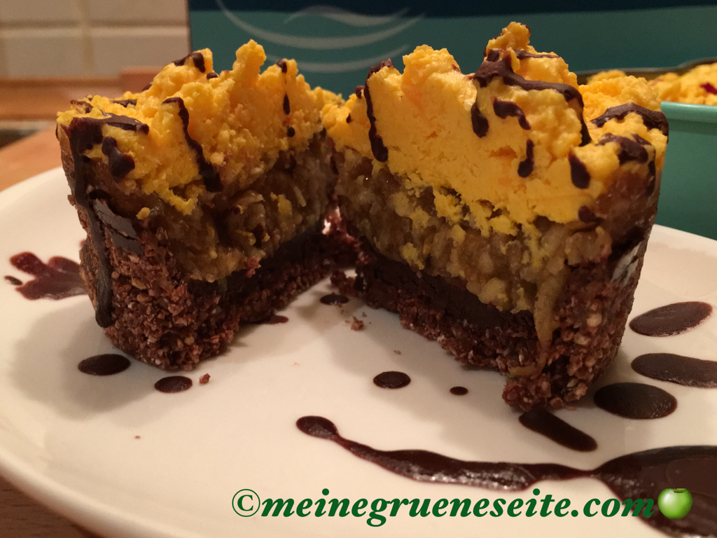 Ich habe es etwas abgewandelt, da die Kokosflocken alle waren. Als Ersatz gab es Erdmandelnflocken und 1 El Kokosmus. Auf dem Guss habe ich etwas RAW-Schokolade geraspelt- und natürlich die Möhrchen aus Gojibeeren… Zwar von der Jahreszeit, so kurz nach Weihnachten, etwas unpassend-aber echt lecker und einfach herzustellen!