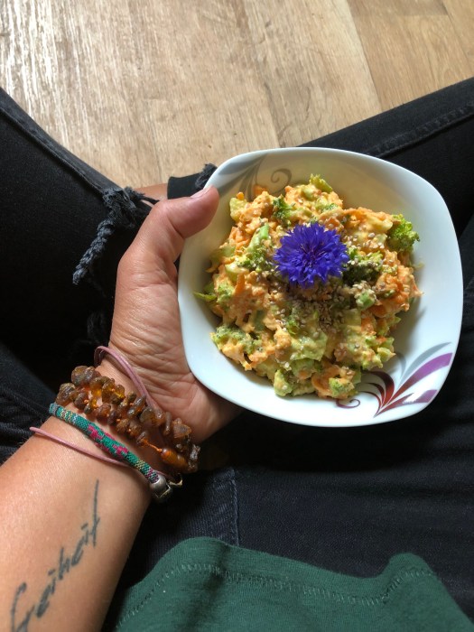alles zusammen gut durchmixen… und auf grünen Salaten genießen.